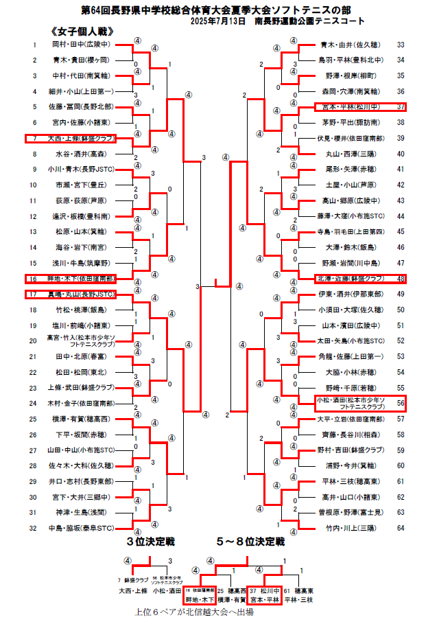 2025年 第64回 長野県中学校総合体育大会夏季大会 県大会 ソフトテニス(女子団体)